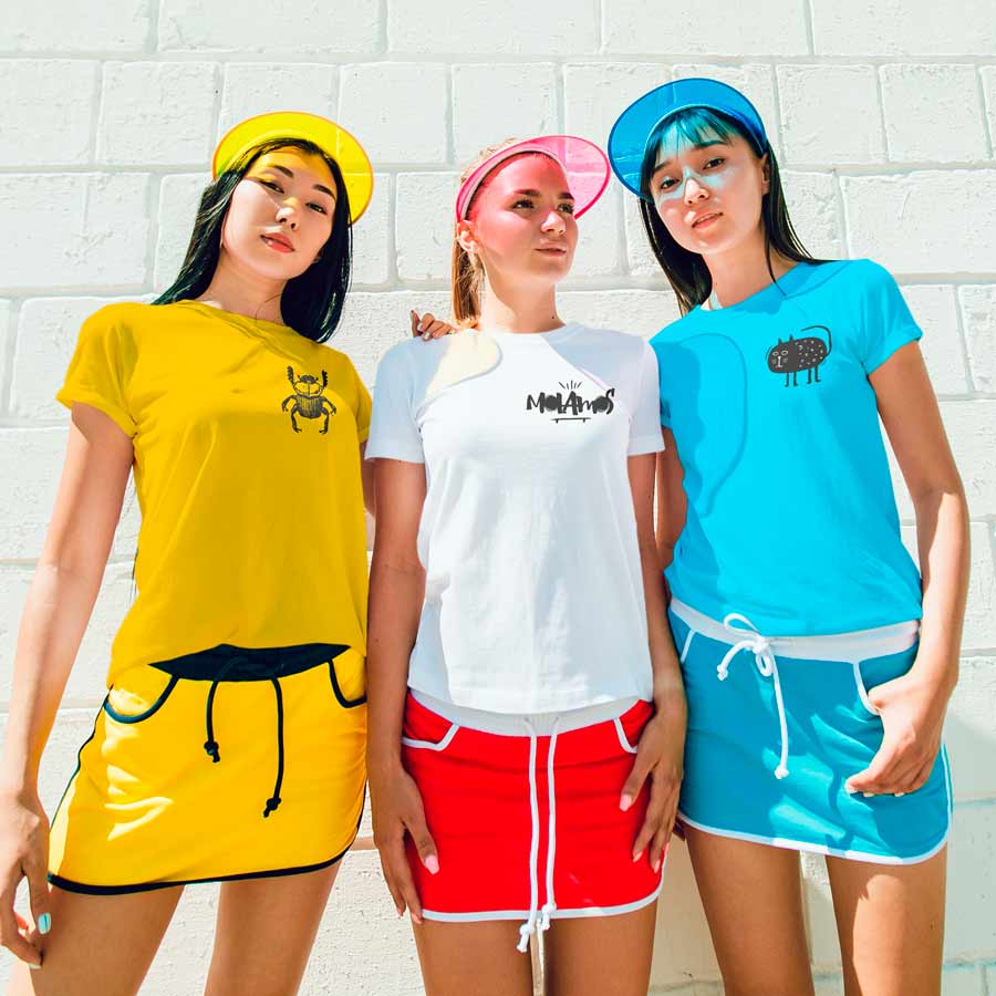 Camiseta de manga corta tubular. Cuello redondo en canalé 1×1. Cubrecosturas en cuello del mismo tejido.
