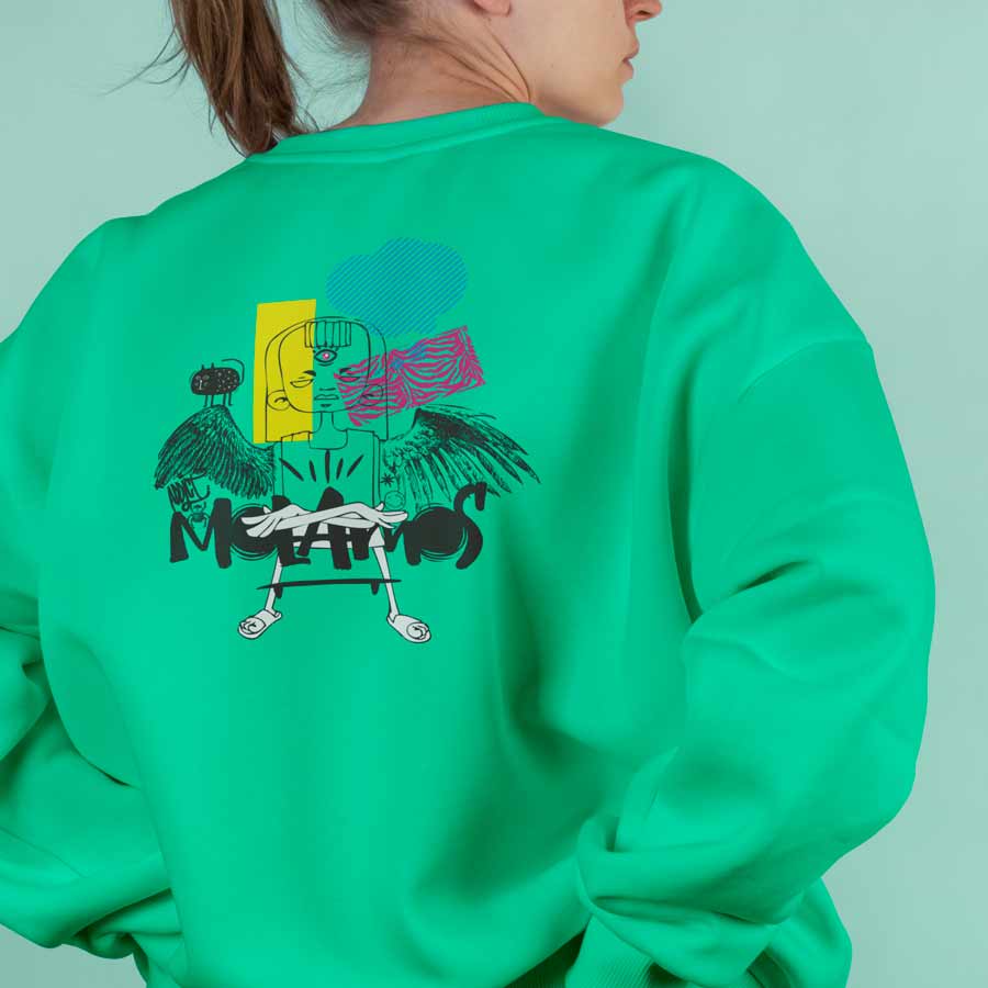 Sudadera con capucha forrada. Puños y cinturilla en canalé 2×1 con elastano. Cubrecosturas del mismo tejido. Cordón plano en capucha. Opciones de colores con capucha a contraste y ojales metálicos al tono.
